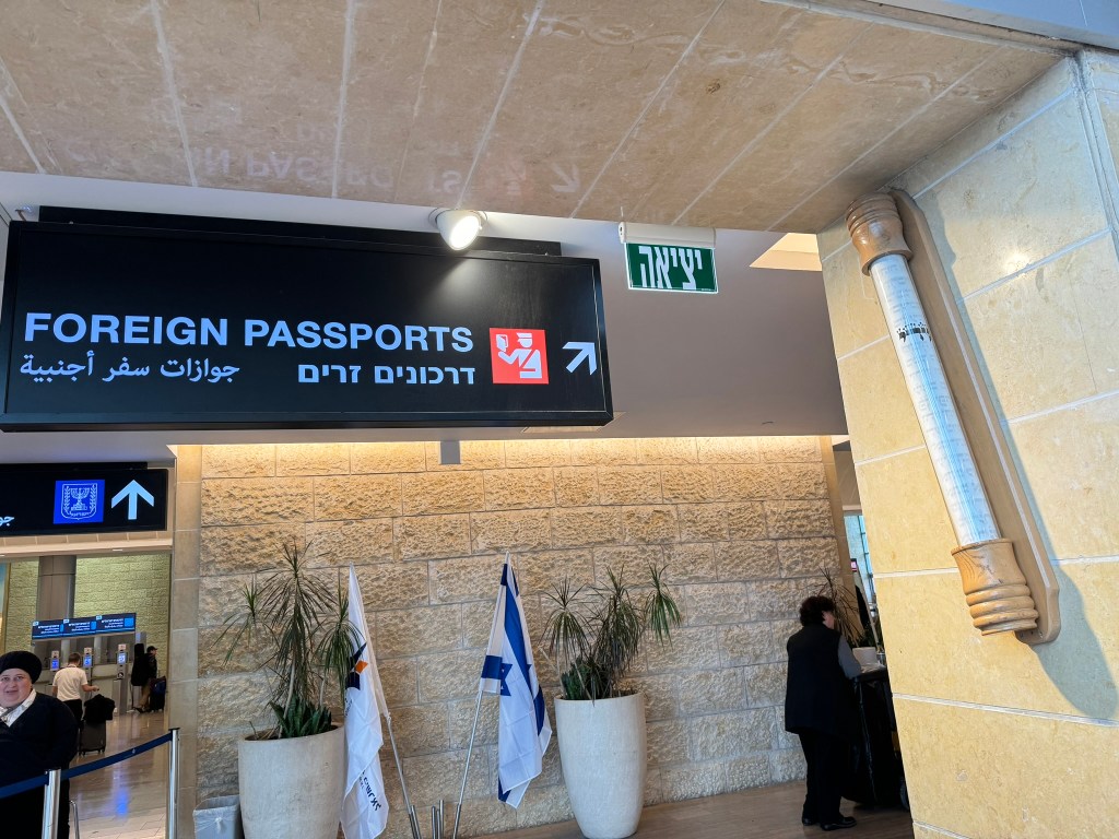 The loudness of our flight was met with a deafening silence of Ben Gurion Airport- empty gates, empty customs, but one thing remains- the reminders of war-time Israel: the photos of those still kept hostage in Gaza (a number of those now famous photos have been removed now that 50+ hostages have been returned), signs for shelters…