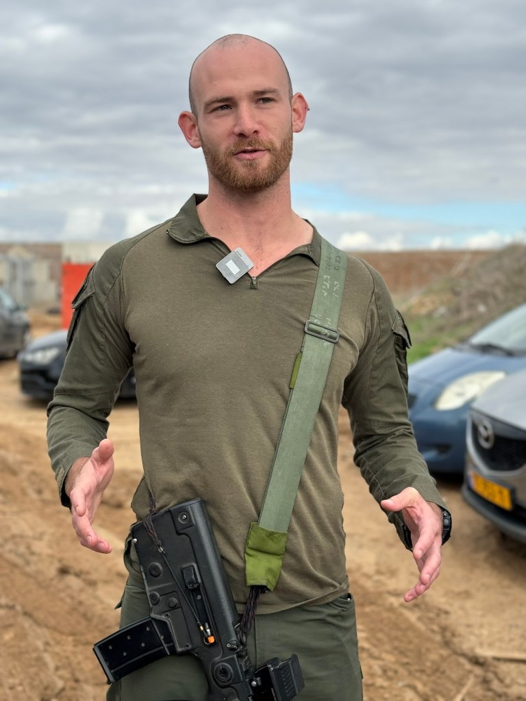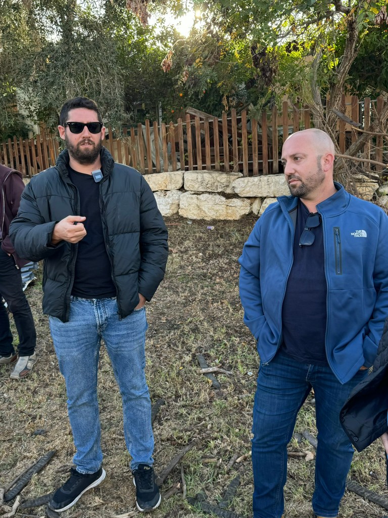 We ask Gon how he can walk around this space, so soon after experiencing this trauma. He says, “Many are not with us anymore. Someone needs to tell the story. And one day, we want to come back here (to live).” Elon futterman- friend of kfar aza and son of Conservative Rabbi Matt Futterman (who will mean shortly) says that there is a line of survivors waiting to tell their story…may there be lines of open minds and open hearts to hear it…