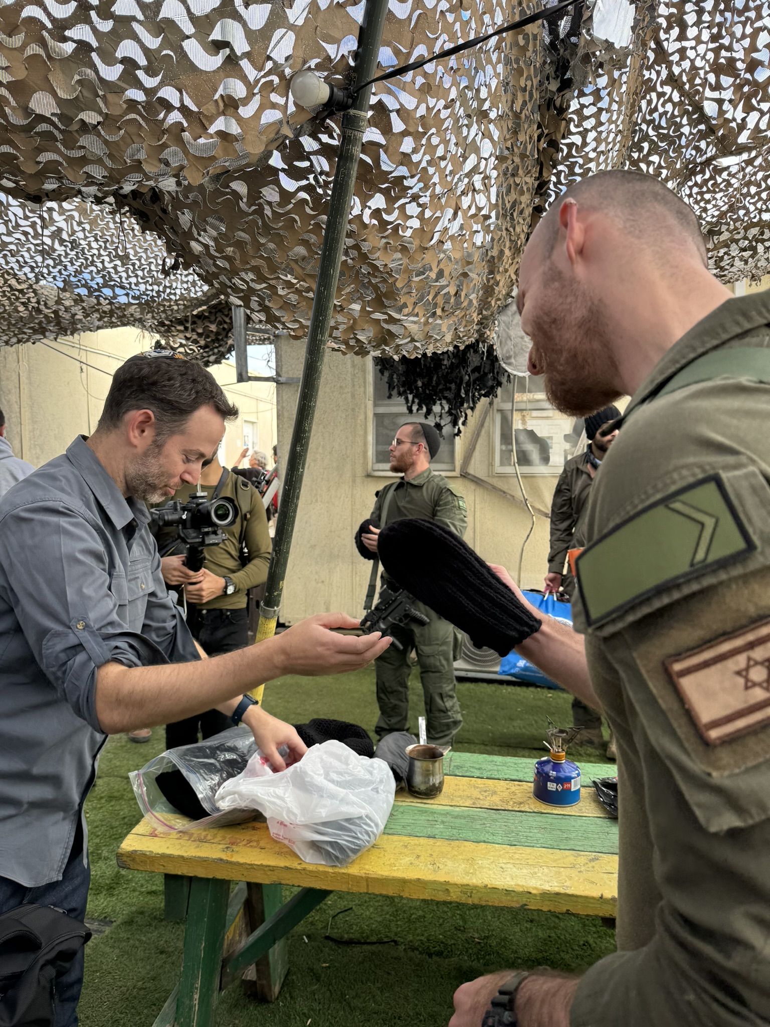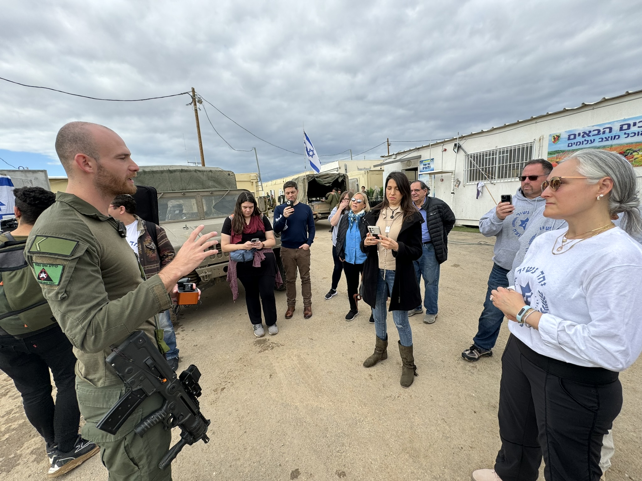Our morning concluded with a visit to Alumim base, where 450 reservists are gathered to watch over kibbutzim that neighbor Gaza. 150 are here on base watching Kibbbutz Alumim.