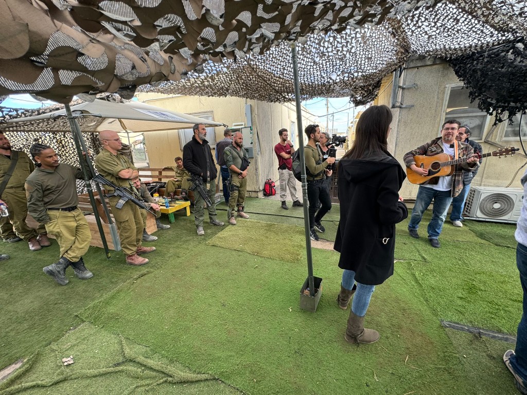 We felt a great sense of “Am Yisrael Chai” when we gathered with the unit for singing. We sang everything from Oseh Shalom to a prayer for the IDF to Kol Haolam Kulo. Of course my highlight was sharing hats knit by members of our synagogue, an important gift to the soldiers as many Mluim (reservists) don’t have access to the same gear that those in active military have. Smiles and hugs as we approach the hardest part of our trip. Part 2 to come soon.