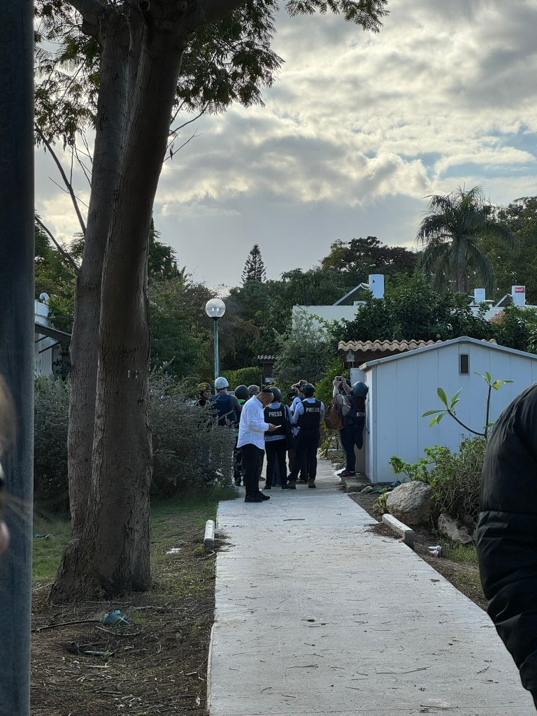 In many ways, visiting a place like Kfar Aza should come across as visiting a concentration camp- the smells, the sights of destruction, paired with the stories of atrocities and war crimes, are so overwhelming that I don’t know when I’ll fully process what I saw. And yet visiting Kfar Aza, led around the Kibbutz by a survivor, Gon, who fought off 40 Hamas terrorists, is so far removed from any trip I ever made to Majdanek, Auschwitz, or Dachau. For in truth, this is the balance of life here- Kfar Aza is the sight of a massacre, a shiva home to those who mourn, and ALSO a Wonderful place “ you should be jealous” our guide tells us that you would be living in a place like Kibbutz Kfar Aza, a privatized kibbutz home to over 900 members with a long waiting list to get in. This is a place that for now is frozen in time (sukkot are still up) and yet it is where the living want to return and will return, a place of loss AND a place, God willing, of life. No one knows what this place will look like tomorrow- a museum, a memorial, a moving tribute AND a place to move forward, to live on.