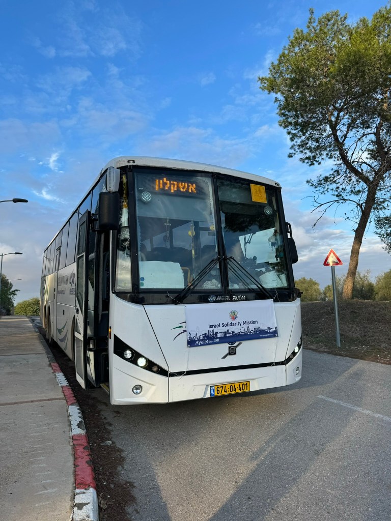 After our meeting we hopped on our armored bus with a quick stop to pick up our guest for our trip South. HIla Ben David is a sensational singer who will be leading our concert tomorrow night. She would otherwise have been unable to visit the places we visited today because she does not have any active military in her family. I know her being with us for these difficult hours was important to her and to our group and will only make our concert together that much more meaningful.