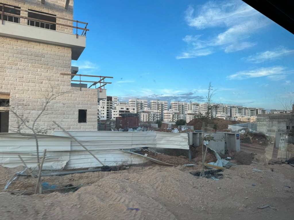 As we met our guide Carmit, rain began to fall during our drive and for the remainder of the day. As a people who normally pray for rain, she reminded us of the new reality of rain- soldiers, hostages in conditions where rain is not a friend. Just another layer that speaks to this duality of the life Israelis and many Jews are experiencing (this will become more evident as we meet with families of hostages- rejoicing in return while dreading what is to happen to those who remain).