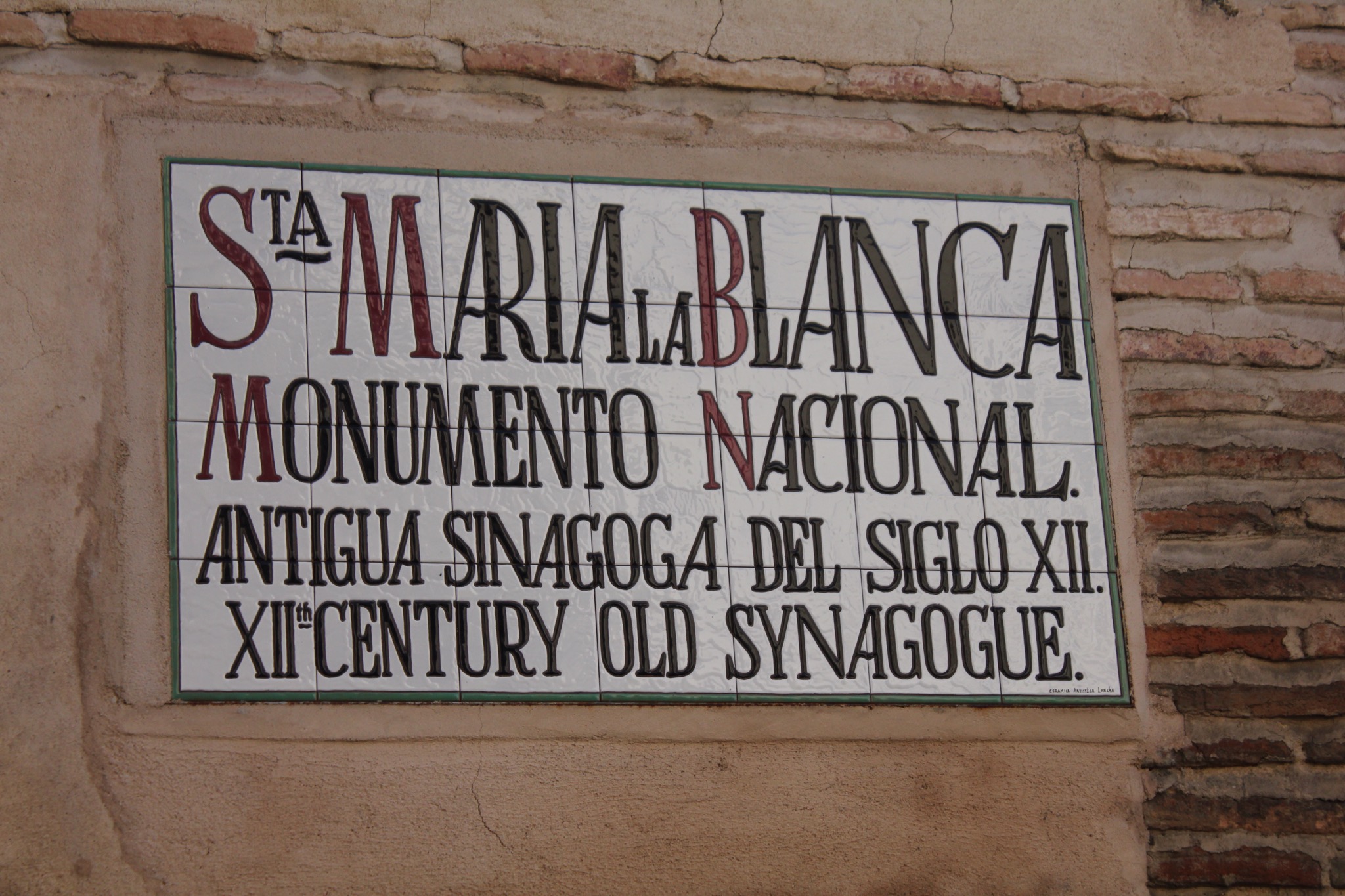 It was fascinating to visit two synagogues created centuries apart, only a block away from each other (sound familiar?). I am always taken by the acoustics of these synagogues. Architectural gems, these synagogues have amazing sound, as shown by my video of Hazzan Alberto Mizrahi on Facebook. We’ll also see a common theme of writing out certain key prayers on the walls. Our guides will paint a balanced picture of religious life in Medieval Spain- often the local religious communities did in fact work hand in hand. In fact, the idea that Arab artisans wrote the Hebrew lettering in one synagogue is but one of many synergies between communities and their worship spaces. Over time, we’ll see a number of worship spaces change hands, converting into mosques and churches without changing up every aspect of the space. As an example, the first synagogue visited was named Santa Maria la Blanca Monumento Nacional. Antigua Sinagoga deal Siglo XII.